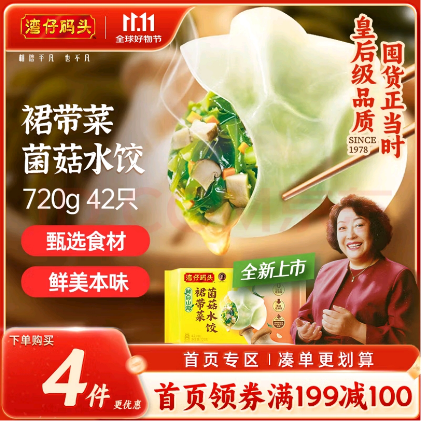 这其中,今年最受消费者喜爱的明星单品湾仔码头系列水饺,包含玉米蔬菜猪肉、大白菜猪肉等多种口味,食材甄选自肥而不腻的猪前腿肉和新鲜爽嫩的青菜,不仅皮薄馅足,鲜香脆甜,蒸煮也方便。今年,京东还独家定制开发了超大容量的1800g系列,总共90只,以满足家庭囤货的需求,京东11.11期间,这款水饺销量突破250万,也是水饺品类中的TOP1单品。