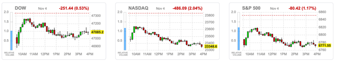 在政策不确定与估值担忧叠加下,全球股市进入剧烈回调。亚洲市场率先承压,日经225指数下跌2.9%,软银集团(SoftBank)暴跌逾10%;美股期货延续疲态,标普500期货微跌0.1%,此前受摩根士丹利与高盛高层警告“估值过热”影响,标普500隔夜已下跌1.2%。