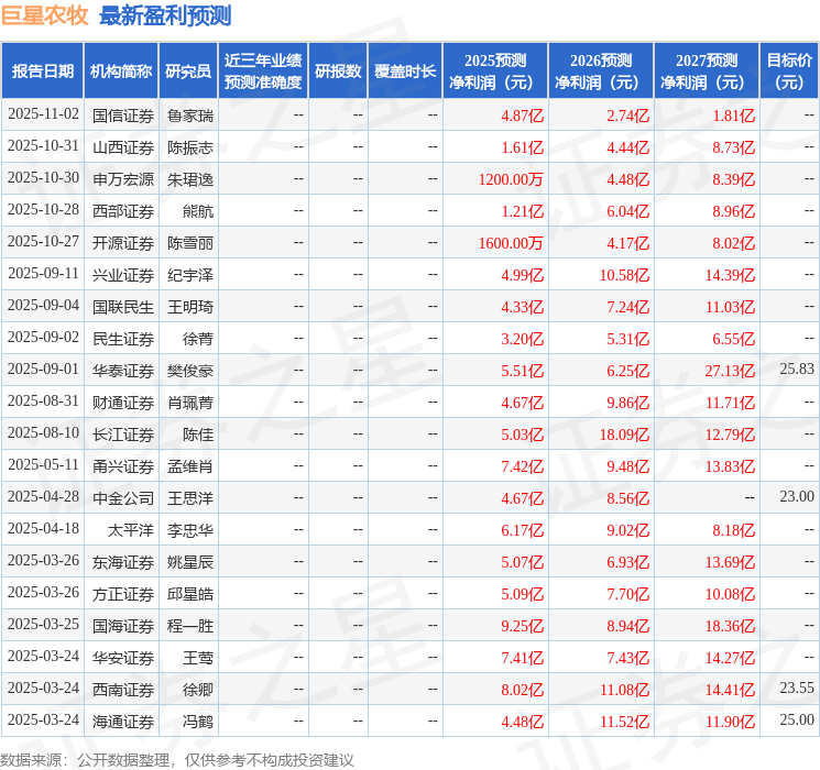 太平洋证券股份有限公司程晓东,李忠华近期对巨星农牧进行研究并发布了研究报告《2025年三季报点评:生猪出栏保持高增长,猪价低迷致利润承压》,给予巨星农牧买入评级。