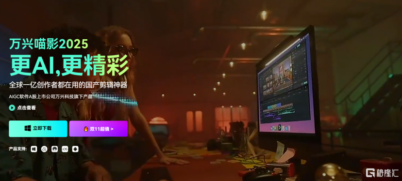 在此背景下,AIGC软件A股上市公司万兴科技(300624.SZ)凭借其清晰的AI商业化路径与持续的技术创新,获得市场高度关注。