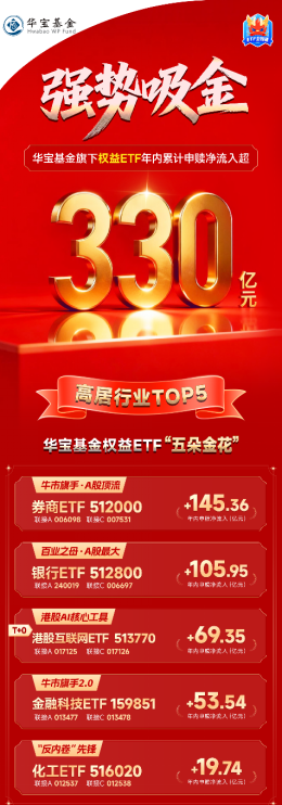 此外,A股规模最大的银行指数ETF——银行ETF(512800)年内资金净流入105.95亿元;港股AI核心工具——港股互联网ETF(513770)年内资金净流入69.35亿元;反内卷先锋——化工ETF(516020)年内资金净流入19.74亿元。这5只ETF均是当前市场细分行业领域的龙头产品,也是2025年华宝基金股票ETF吸金榜上的“五朵金花”,其资金流入、流出情况,成为市场对相关行业板块投资情绪的一个缩影。(数据来源:沪深证券交易所;时间截至2025.10.31)