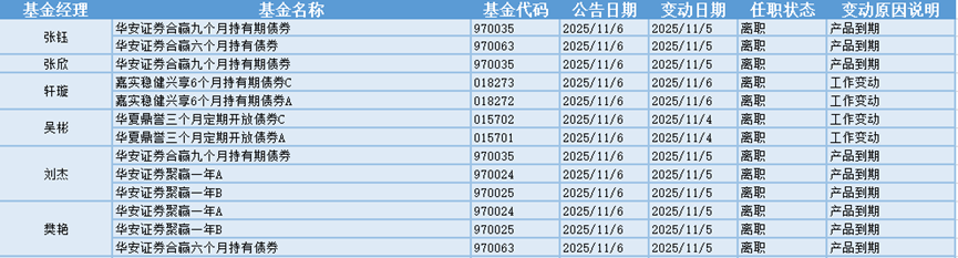 根据巨灵统计的数据显示,近30天(10.7-11.6)共有500只基金产品的基金经理发生离职变动。其中今天(11.6)有13只基金产品发布基金经理离职公告,从变动原因上来看,有2位基金经理是由于工作变动而从管理的4只基金产品中离职,有4位基金经理是由于产品到期而从管理的9只基金产品中离职。