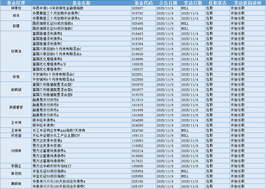 新基金经理上任方面,国投瑞银基金赵建现任基金资产总规模为84.93亿元,管理过的基金都为指数型基金,任职期间回报最高的产品是国投瑞银中证消费服务指数(161213),为指数型基金,在任职的7年又265天时间内获得168.17%的回报。新上任国投瑞银北证50成份指数A、国投瑞银北证50成份指数C这两只基金产品的基金经理。