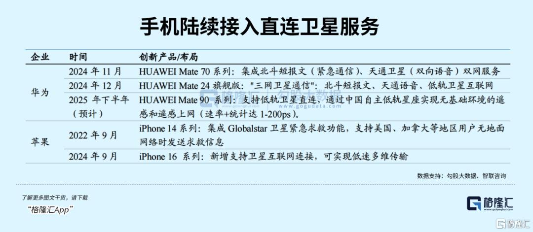 手机直连卫星打开消费级市场,应用服务迎来规模化爆发。终端环节可关注布局卫星通信功能的消费电子厂商,以及提供通信模块的配套企业;应用服务方面,应急通信、海洋通信、“一带一路”海外网络服务是核心方向,随着卫星组网完善,相关企业将迎来持续现金流。