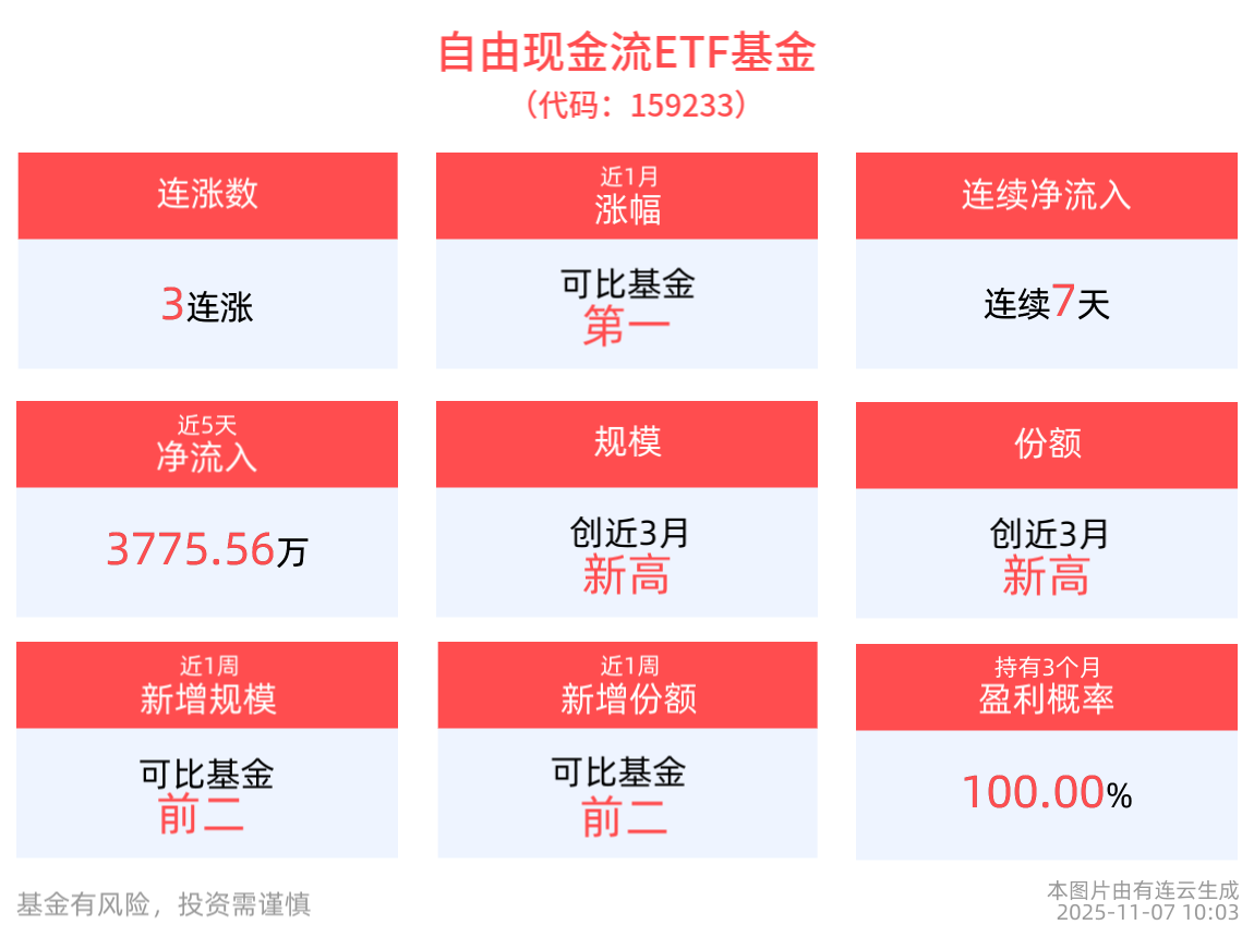份额方面,自由现金流ETF基金最新份额达3.46亿份,创近3月新高。