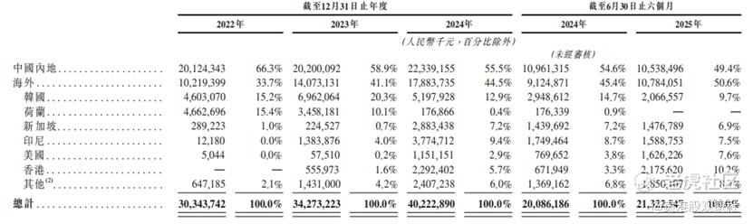 分地区来看,中伟新材的全球化布局成效显著,海外市场已成为公司重要的收入来源。2022年至2024年,公司来自中国内地以外直接客户的收入占比从33.7%提升至44.5%,截至2025年6月30日止六个月,这一比例进一步提升至50.6%,公司产品在全球市场的认可度持续提升。从具体地区来看,韩国、荷兰、新加坡、印尼、美国及中国香港是主要海外市场。国内市场方面,2024年中国内地收入占比55.5%,仍为重要支撑,整体形成“海内外市场均衡发展、相互补充”的收入结构,有效分散单一市场波动风险。