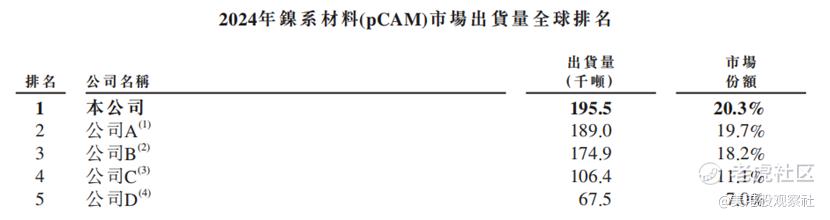 在行业竞争中,中伟新材凭借强大的技术实力与规模化生产能力,取得了领先的市场优势。根据弗若斯特沙利文数据,公司自2020年起连续五年位居全球锂离子电池用镍系和钴系pCAM出货量榜首,2024年镍系pCAM与钴系pCAM的全球市场份额分别达到20.3%及28.0%,全部pCAM产品以21.8%的市场份额位列全球第一。在新能源金属领域,公司同样表现突出,2024年以3.7%的市场份额跻身全球镍产品市场第六位,其全球供应链布局与一体化运营能力得到行业高度认可,成为全球新能源材料产业链中不可或缺的重要参与者。