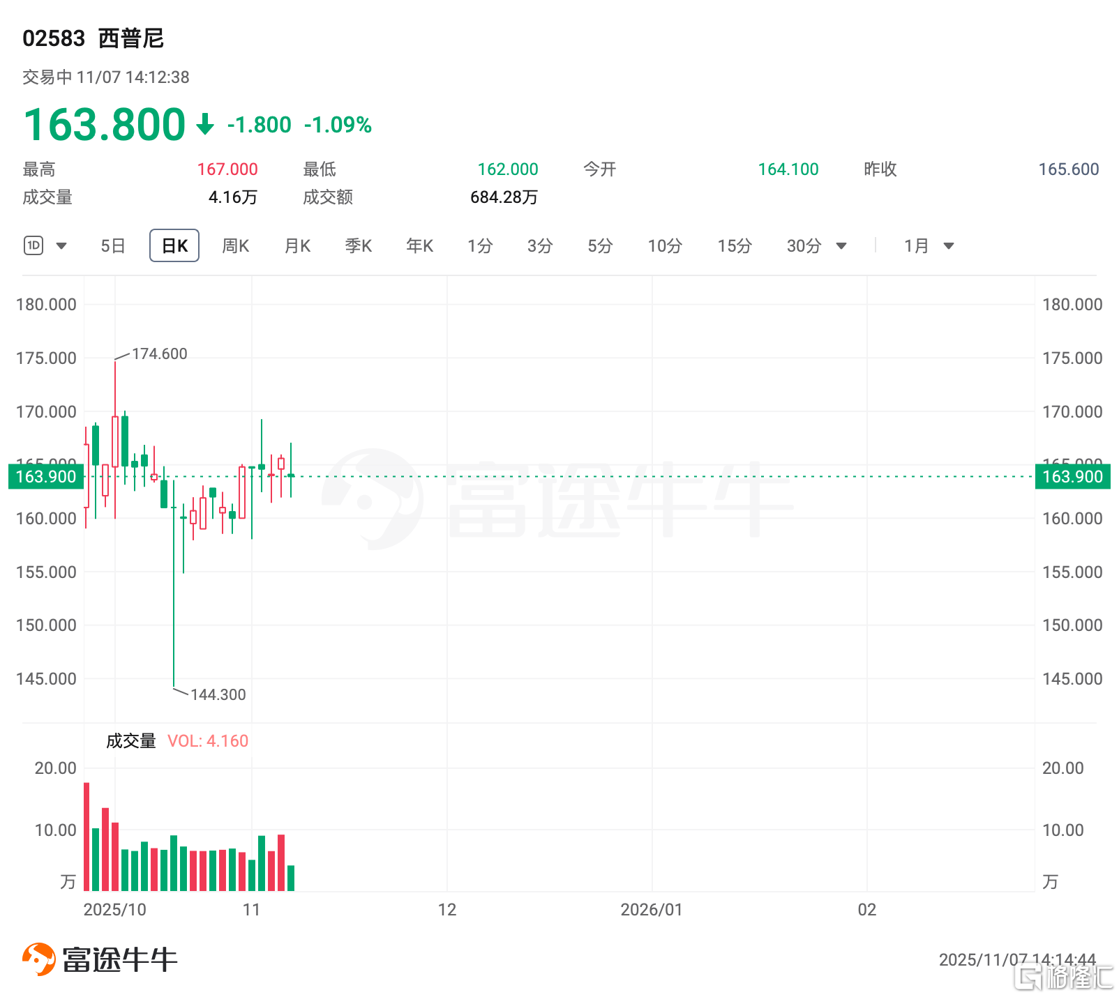 另从市场表现来看,西普尼于今年9月登陆港股市场,上市首日便斩获258%的涨幅,一度创下年内港股新股首日最高涨幅纪录,此后股价持续强势,目前已攀升至163.8港元/股,累涨超过453%。资本市场对西普尼的看好态度也不言而喻。