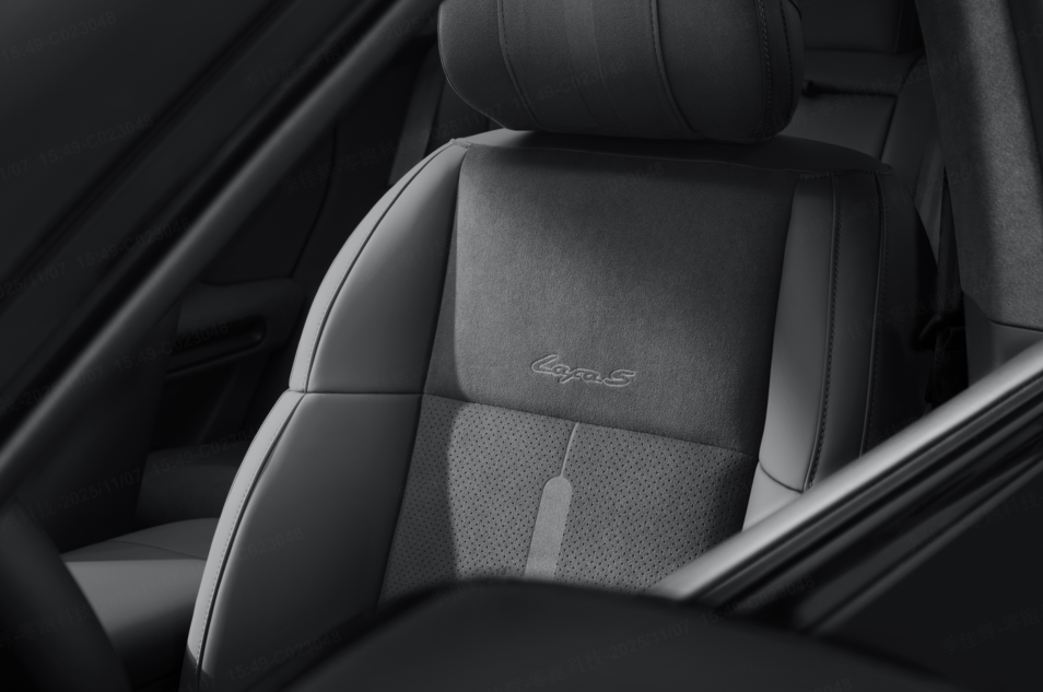 内饰配色提供速域紫、驰影灰、竞速灰三种选择,速域紫夜色霓虹与尾焰的颜色,极具时尚与运动感;驰影灰灵感源于赛道柏油的中性灰调,理性而不平庸;竞速灰质感运动、出众,采用5.54㎡仿麂皮超纤绒与Nappa全粒面真皮拼接,座椅上“延伸赛道”纹理与“Lafa5”专属字标烫印,在细节处彰显豪华运动质感。