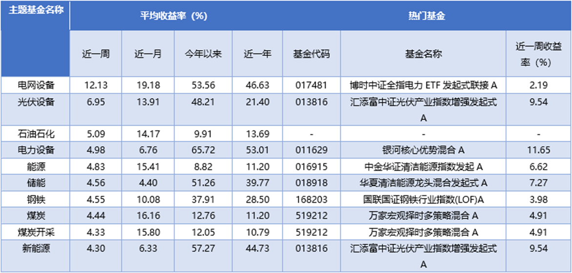 四、 基金主题近一周(11.3-11.7)平均收益率top10