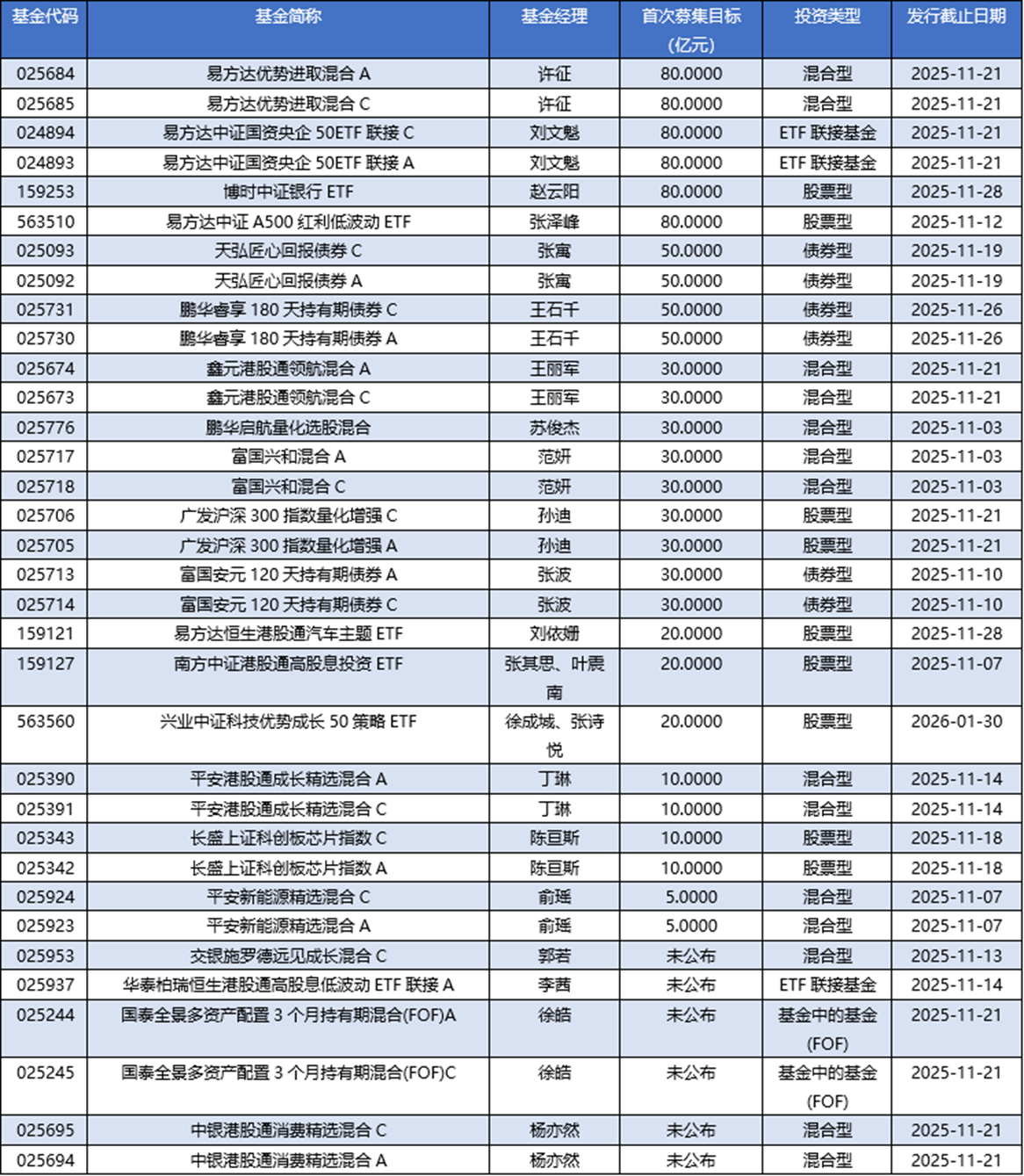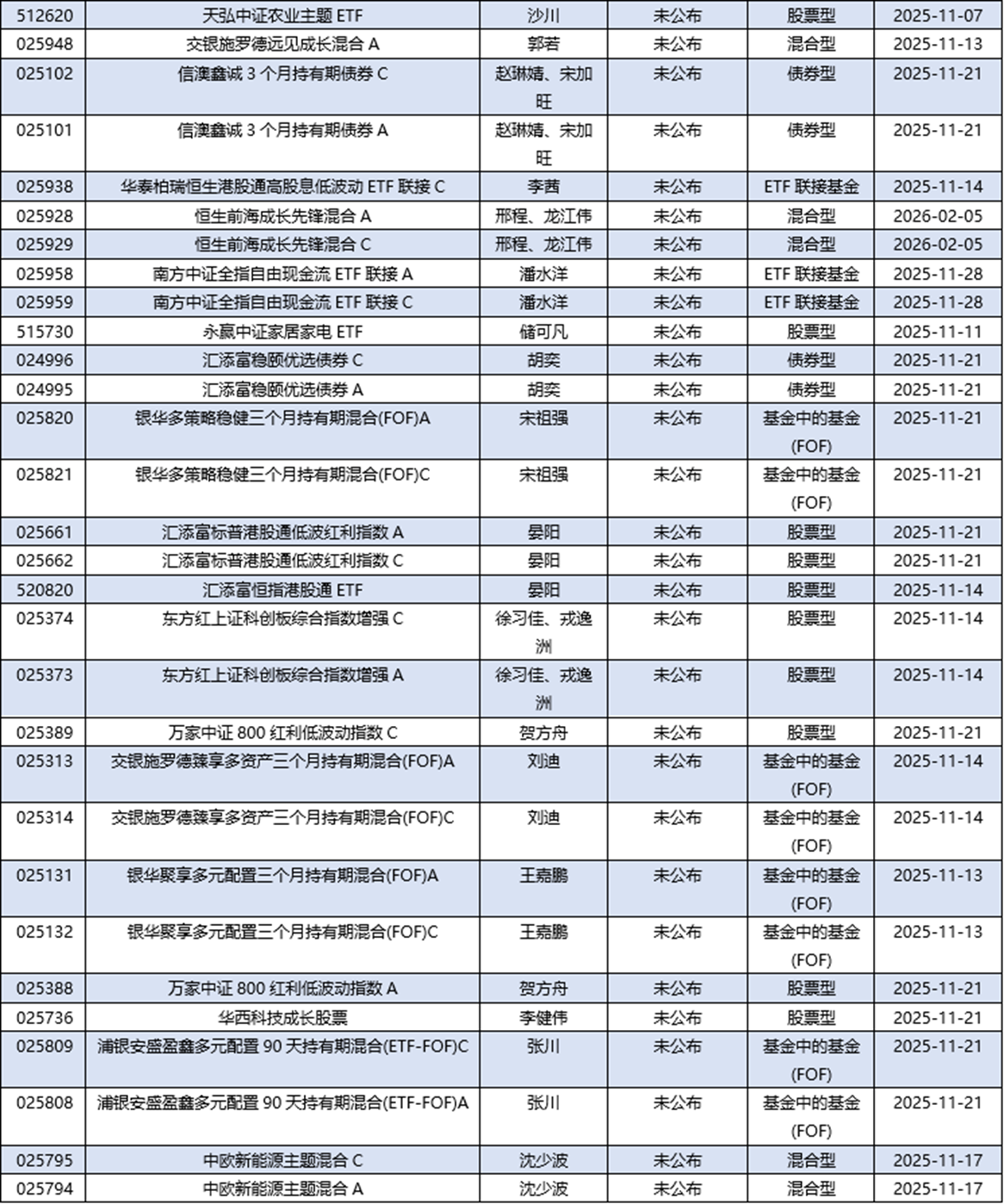 五、 上周(11.3-11.7)新发基金一览(不包含传统封闭式基金)
