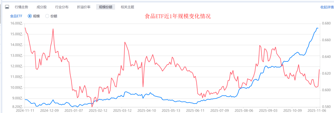 所以,当所有人对消费股过度悲观之时,板块有机会出现一波修复行情。食品ETF(515710)目前规模仍有15亿左右,流动性十分充足。前十大重仓股不仅有白酒龙头,也有伊利股份,海天味业,东鹏饮料等其他细分龙头,值得投资者重点关注。