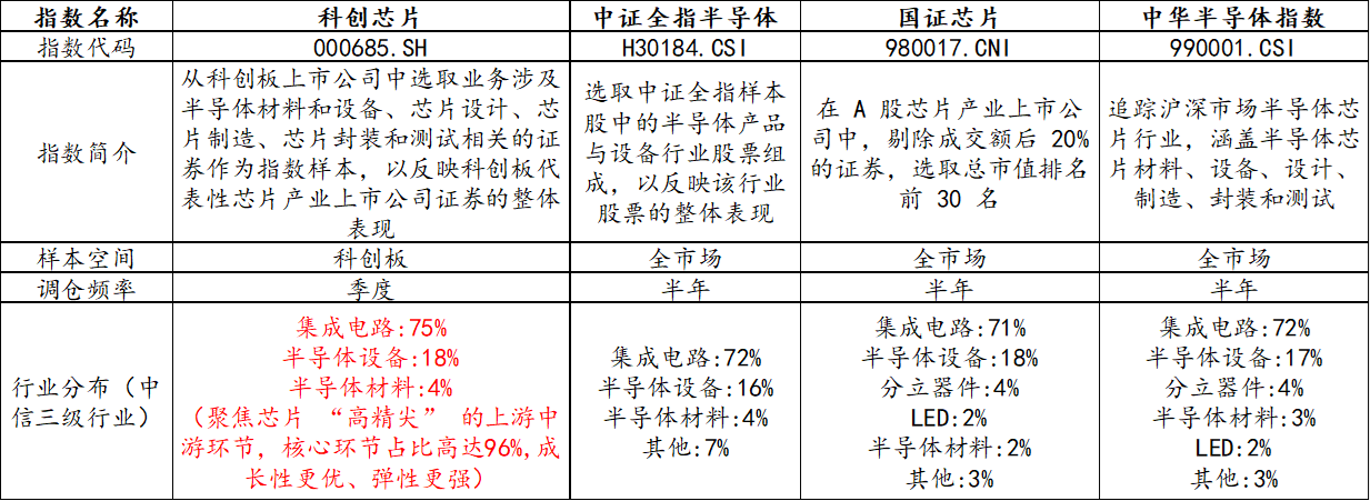 从调仓频率来看,科创芯片指数选取季度调仓,能更敏捷地反映芯片产业链发展趋势。