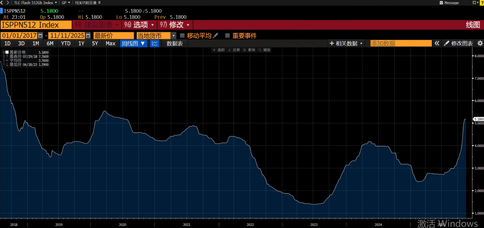 以TLC Flash 512GB为例,最新的价格已经达到5.18美元,较今年4月时2.57美元的价格暴涨了102%: