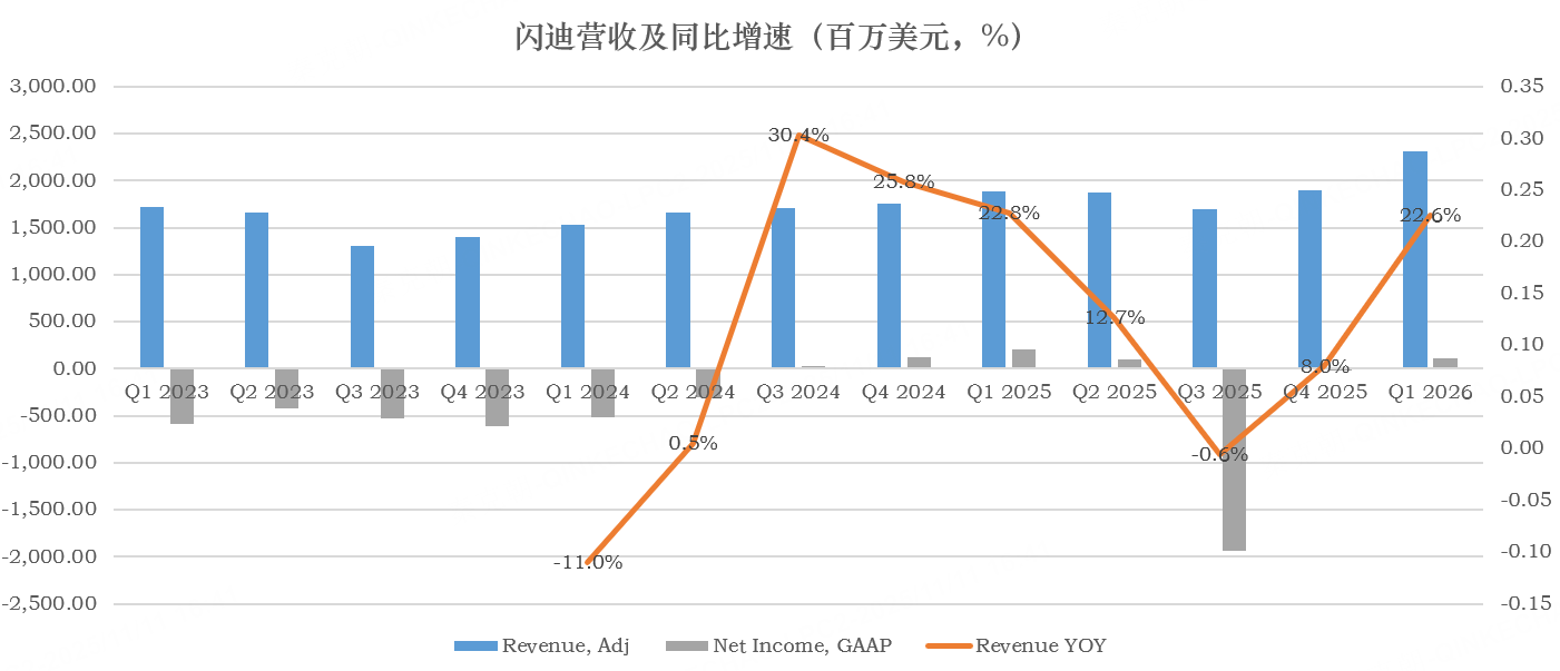 根据指引,闪迪当前季度的营收有望达到26亿美元,同比增长约40%,追上美光的步伐。