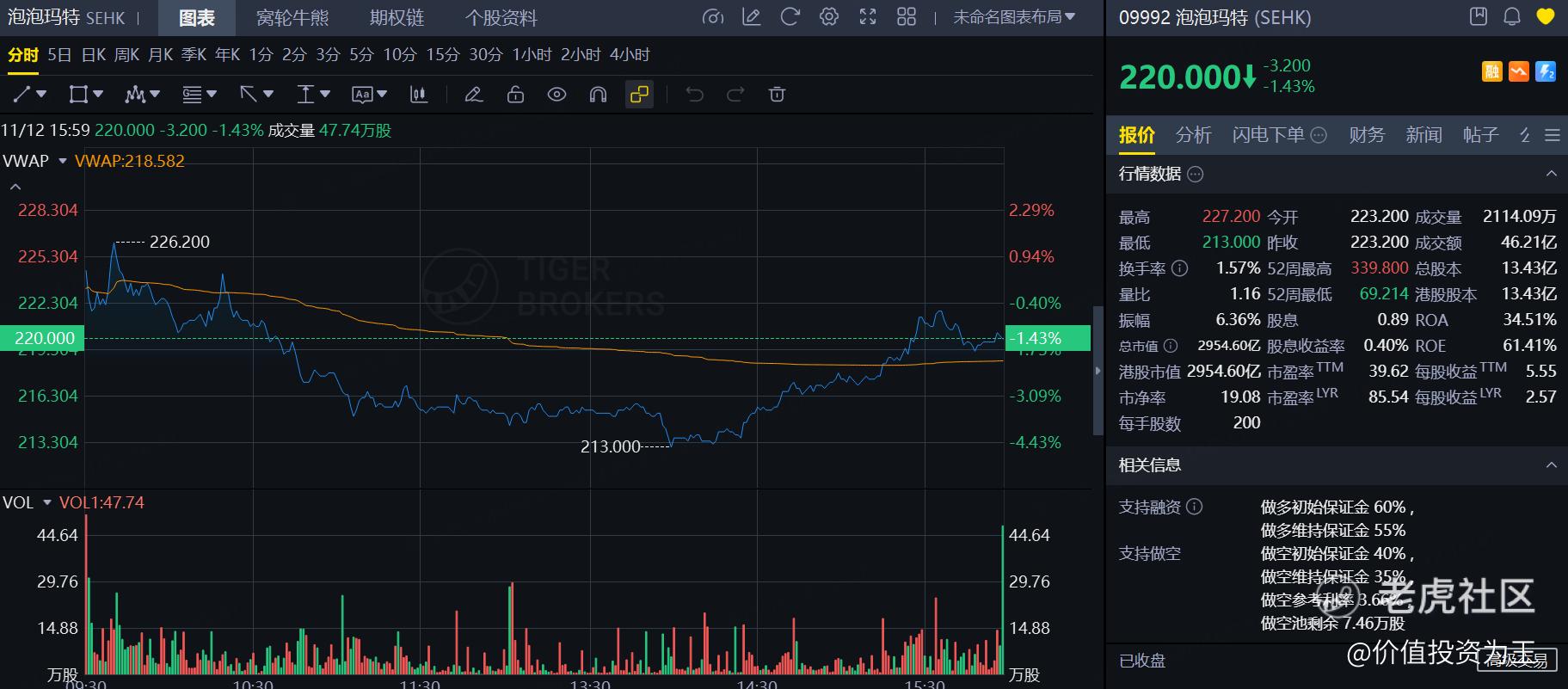 受此影响,泡泡玛特盘中一度跌超4.4%: $泡泡玛特(09992)$