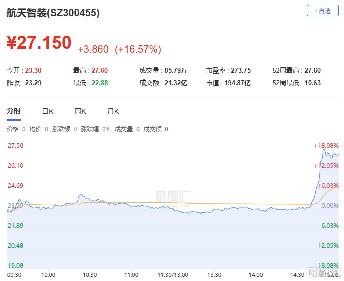 航天智装:今日上涨16.57%,全天换手率12.11%,成交额21.32亿元。机构净买入1.75亿元,深股通净买入1603.54万元,营业部席位合计净卖出669.43万元。