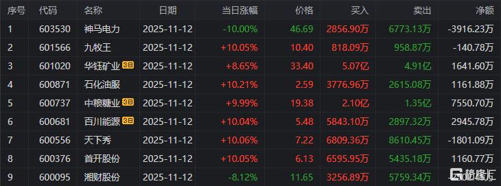 在龙虎榜中,涉及沪股通专用席位的个股有6只,石化油服的沪股通专用席位净买入额最大,净买入1161.88万元。