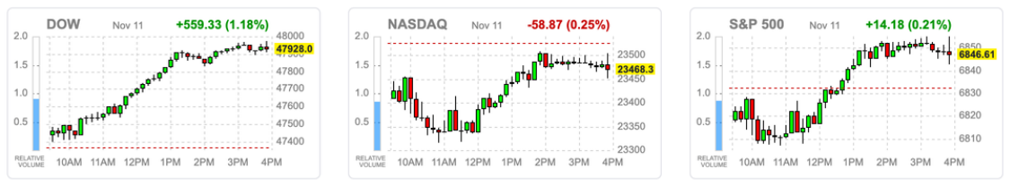 美国政府有望重新开门,提振市场信心,道琼与标普连涨两日。参议院已通过临时拨款案,众议院准备表决,特朗普总统公开表示支持,使史上最长的政府关门危机有望结束。市场焦点转向政府恢复运作后即将公布的延后经济数据,尤其是劳工部的9月就业报告。根据 ADP 数据,过去四周私人部门平均每周减少约1.1万个岗位,若数据疲弱,可能强化美联储12月降息预期。此外,政府恢复支出有望改善近期的流动性收缩。VIX 下跌1.65%,标普成功站稳20日均线。