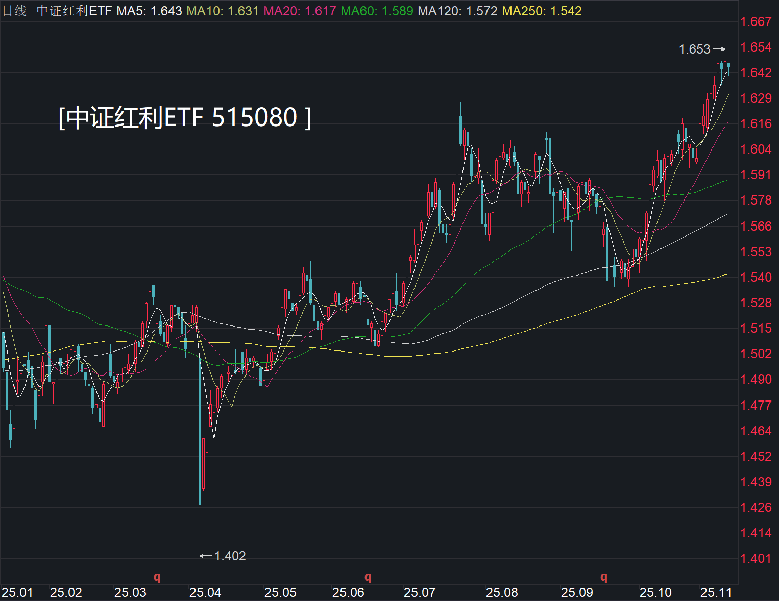 11月13日,沪指继续在4000点上下震荡,科技板块延续分化。避险方向,农业银行继市值突破3万亿后暂作调整,中证红利ETF(515080)自10月以来净值迭创新高,前一交易日净值再度刷新年内新高,显示市场或正转向红利。