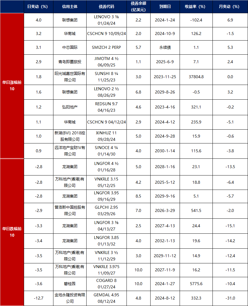 3.中资美元债每日价格变动(截至11月12日收盘)