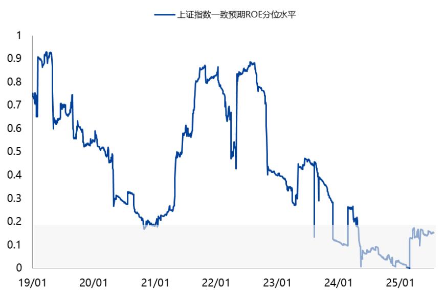 自24年以来,我国经济总量维持稳定增长,但企业角度的盈利却没有改善,从ROE(净资产收益率)的历史分位情况来看,24年以来的上市企业盈利水平维持在历史20%底部区间的显著低位。