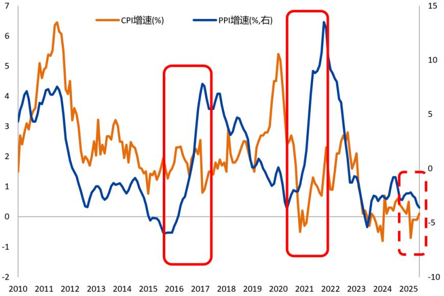 阶段三:政策效果渐显,价格回暖,盈利加速改善,基本面驱动市场长期向上。如果“反内卷”政策逐步落实,多个产业供需格局出现显著好转,上下游商品价格企稳回升,价格底、盈利底或陆续确认,有望加快自25年开始的A股盈利底部回升的节奏,助力市场迈入基本面驱动下的长期向上格局。