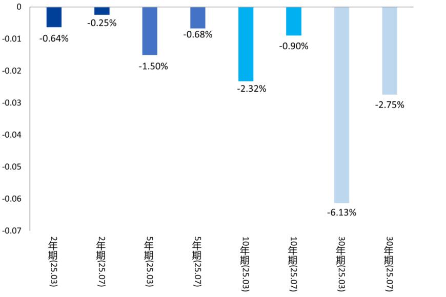近期反内卷政策持续发力,近年来产能政策类似的阶段分别为2016年的“供给侧改革”以及2021年“能耗双控”。回顾前两轮的限产对通胀的影响,由于涉及行业集中于煤炭、钢铁、能源等上游环节,因此对PPI增速形成较为明显的提振,CPI增速相对平稳。2016年PPI增速由负转正,并最高至7.8%,2021年PPI增速则快速上行,最高至13.5%,创下历史高点。本轮“反内卷”涉及行业则相对更广,包括光伏、汽车等行情,叠加当前PPI及CPI均基数较低,都存在修复预期。从历史走势及本轮大宗商品表现来看,“反内卷”政策供给侧发力对价格影响短期较为直接,对通胀存在托底效果,但中期通胀是否持续抬升仍需关注需求侧接力。对债市而言,通胀抬升将降低债券配置价值、增加货币政策收紧的担忧,对债市存在拖累。从上两轮限产期间表现来看,虽然兑现滞后及持续时间存在差异,但债市跌幅达到8.4%和6.8%。