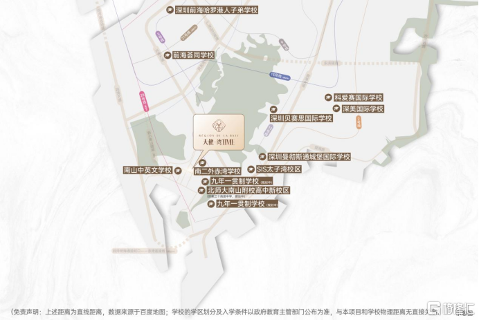 (免责声明:上述距离为直线距离,数据来源于百度地图。学校的学区划分及入学条件以政府教育主管部门公布为准。)