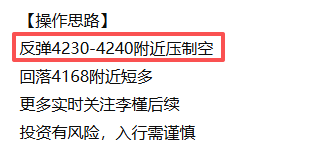 反弹4208附近轻仓试空