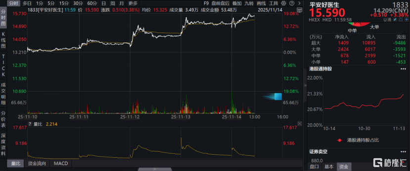 从技术面来看,公司在触及120日均线后企稳反弹,连续五日资金净流入,显示市场情绪正从谨慎转向积极。更值得留意的是南下资金的悄然布局。自10月底以来,港股通持股比例从20.75%稳步攀升至21.34%,透露出南下资金对这家医疗科技平台信心的回暖。
