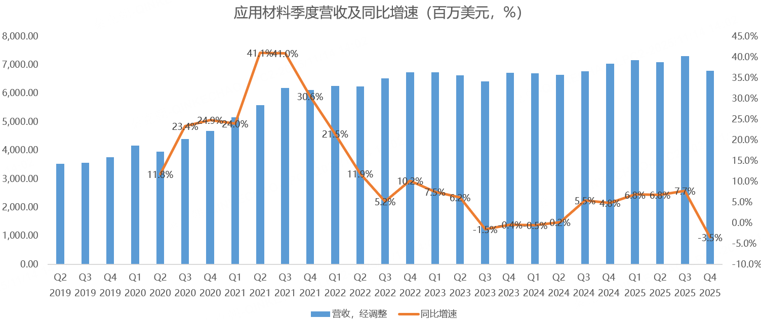 具体来看,应用材料25财年四季度营收68亿美元,同比下滑3.5%,但高于管理层给出的67亿指引中值: