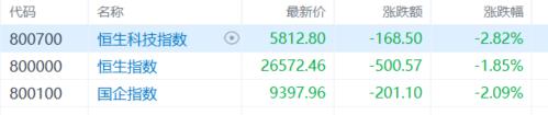 11月14日,港股三大指数集体下挫,恒生科技指数跌2.82%,恒生指数、国企指数分别下跌1.85%及2.09%,恒指再度失守27000点大关。
