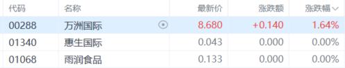 另一方面,生物医药股逆势上涨,歌礼制药大涨超15%,来凯医药、圣诺医药均涨超12%;花旗称中美市场猪肉价格前景仍然有利,猪肉概念股龙头万洲国际连涨创历史新高。