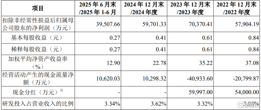 具体来看,2022年、2023年、2024年、2025年1-6月,公司营业收入分别约52.67亿元、51.24亿元、44.39亿元、32.75亿元,对应的净利润分别约7.81亿元、7.93亿元、6.07亿元、4.04亿元。