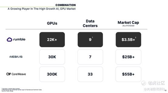 Northern Data拥有超过2.4万个GPU,但未配备任何新款Blackwell系列GPU,仅拥有2000个H200系列GPU。Rumble称自身有望成为下一个Nebius或CoreWeave,但选择此时进行类比时机欠佳——近几周,因新电力部署遇挫,CoreWeave的股价已暴跌约35%。