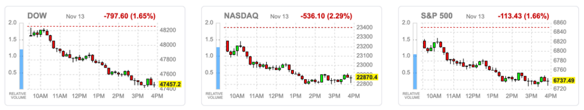 美股在政府停摆结束后的短暂反弹后,迅速迎来更猛烈的“强震行情”。三大压力交织:数据缺口+降息路径转向不明+AI高估值集中回调,使市场从前高拉回、风险偏好急速降温。美国劳工统计局与经济分析局警告部分就业与通胀数据可能永远缺失,导致联准会12月是否继续降息从原本70%概率急降至约50%,决策层也因“信息残缺”转趋谨慎。