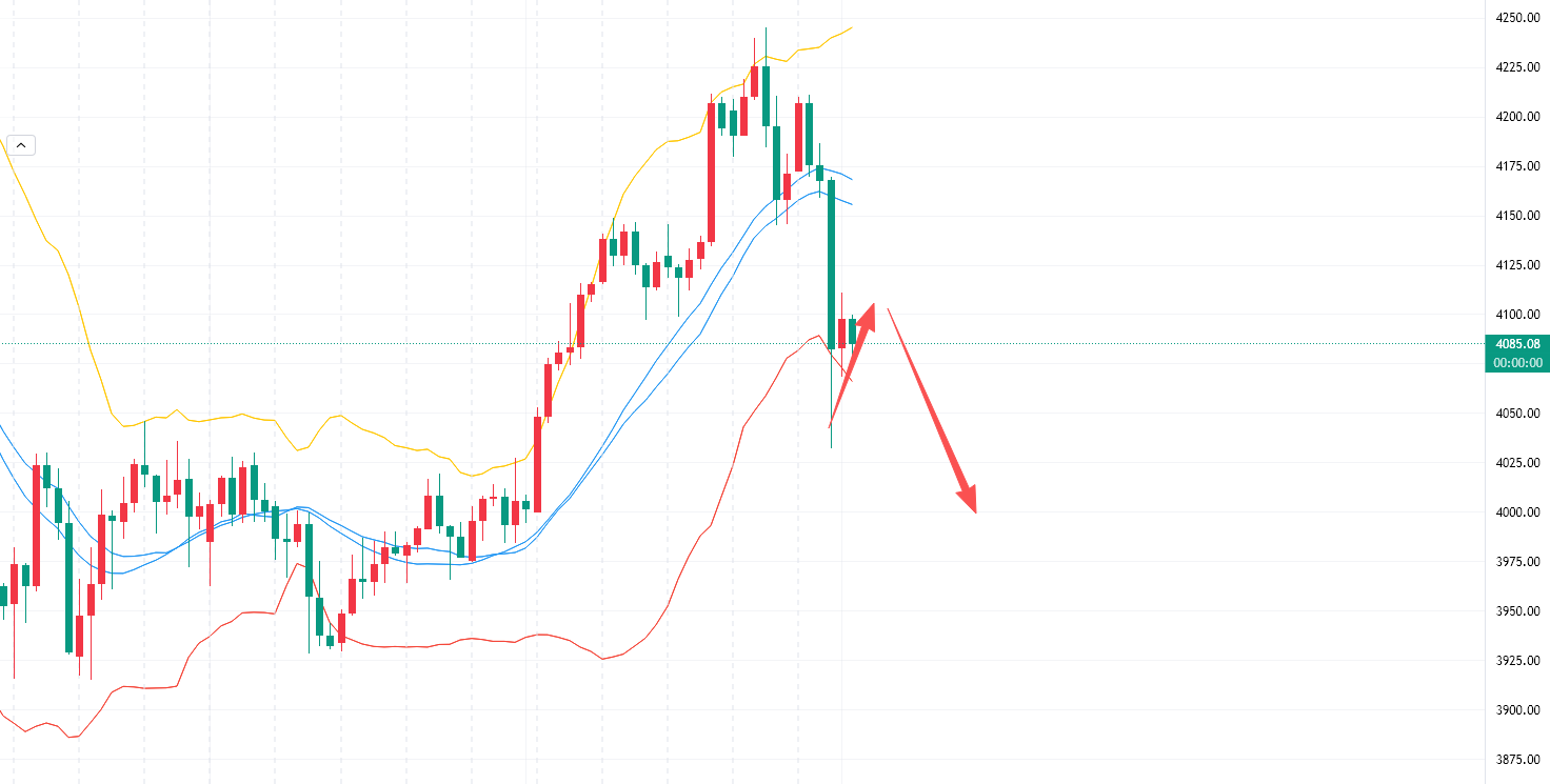 周一继续反弹空,日线比较稳健理想的位置4168附近,接近轻仓空,弱势下跌可能会在凌晨反弹高点4110-4100下方运行。做多的话4000关口不破短多,破位反弹顺势跟进。