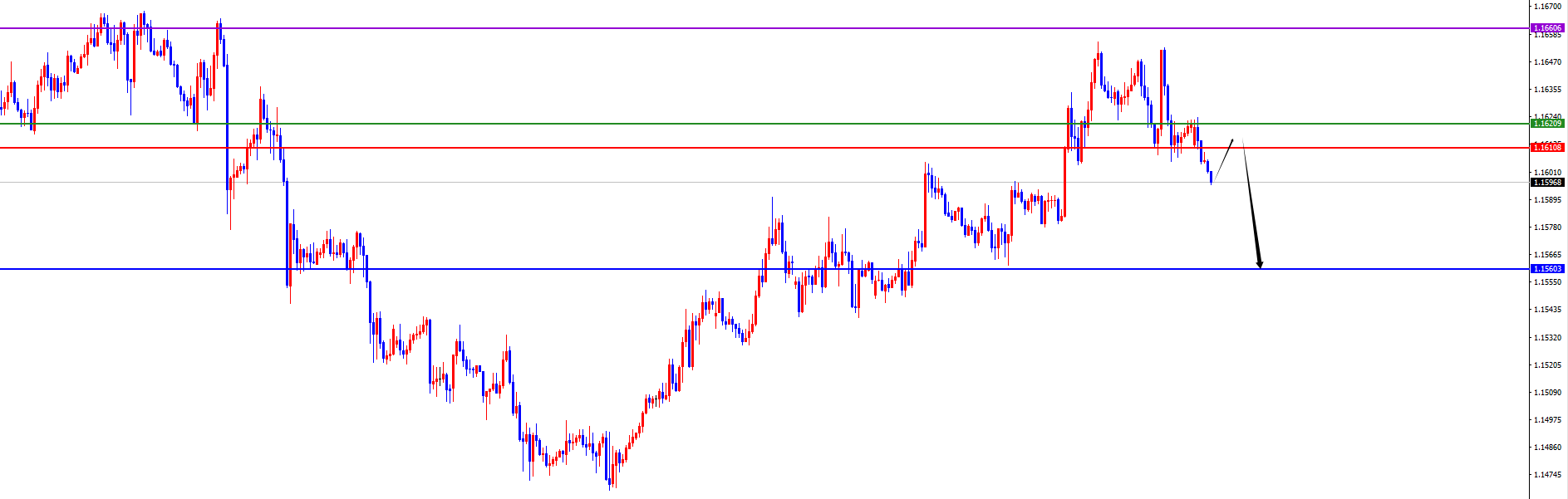 关键分水岭1.1610-20区域,价格没有出现反转之前先看空