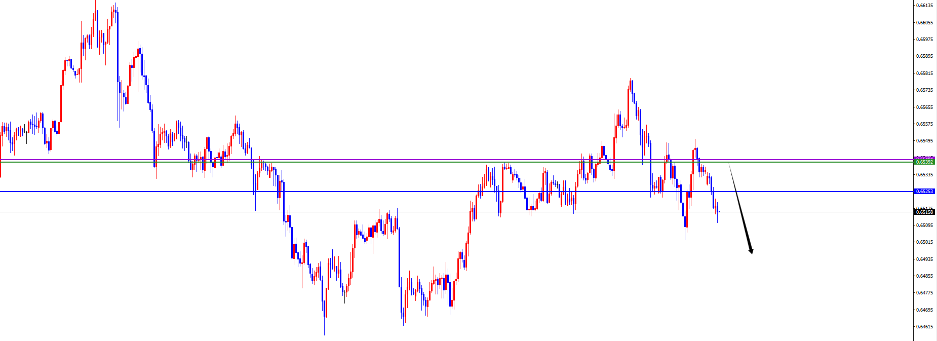 关键分水岭0.6530-40区间,价格没有出现反转之前先看空