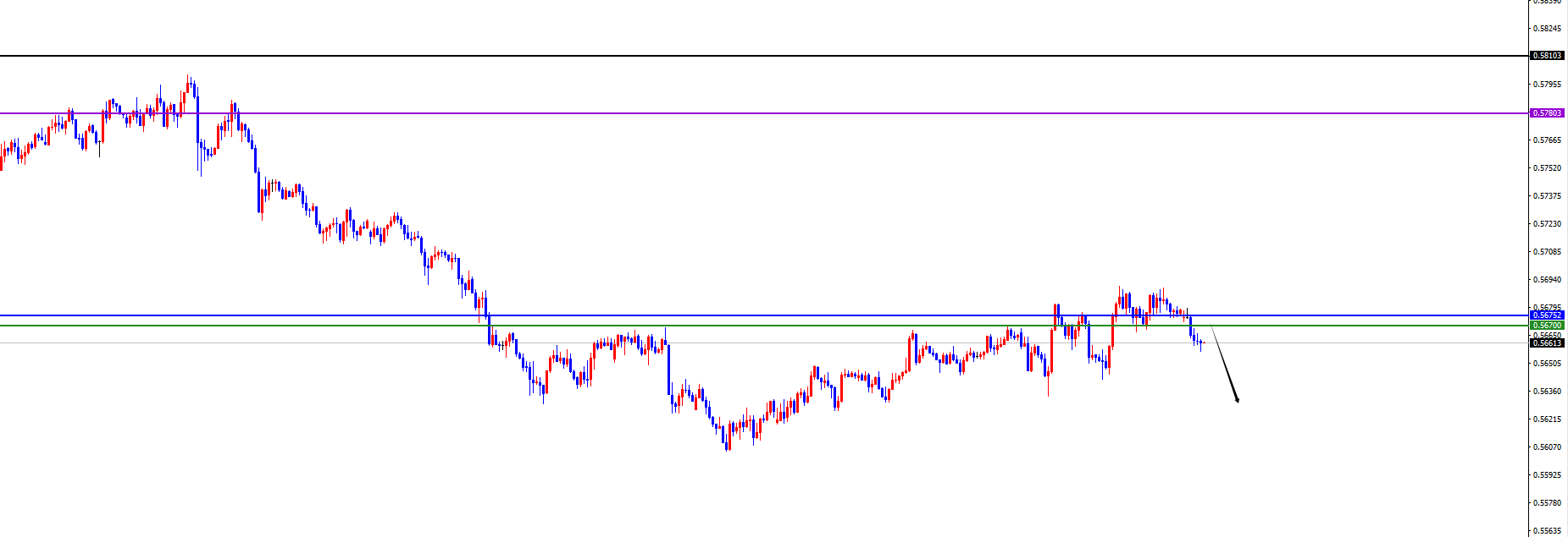 关键分水岭0.5670-80区域,价格没有出现反转之前先看空