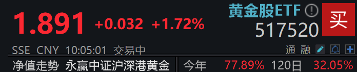 黄金股ETF(517520) 上涨1.72%。拉长时间看,黄金股年初至今涨幅超77%显著高于伦敦金及沪金涨幅。