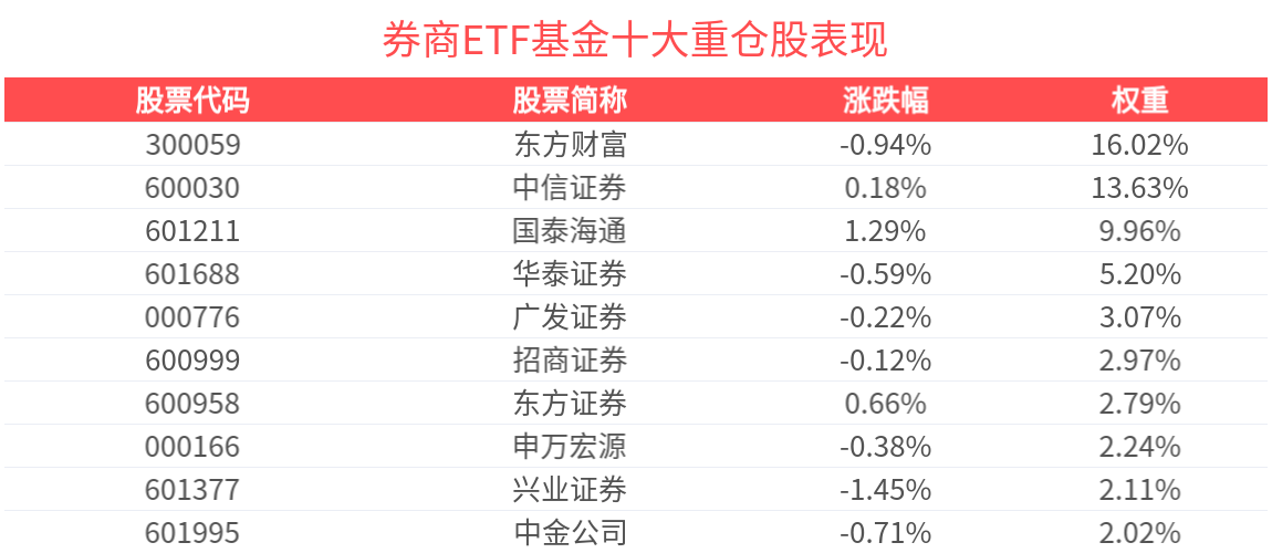 费率方面,券商ETF基金管理费率为0.15%,托管费率为0.05%。