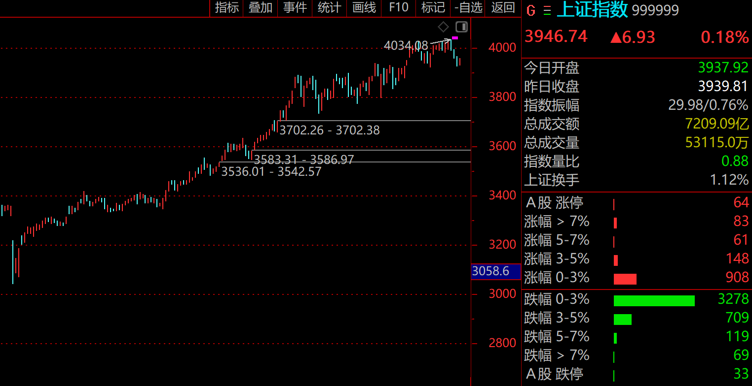 周三,A股缩量震荡,呈现分化态势,根据交易所数据,上证指数微涨0.18%,报3946.74点;深证成指平收,报13080.09点;创业板指涨0.25%,报3076.85点;科创50则下跌0.97%,报1344.8点。