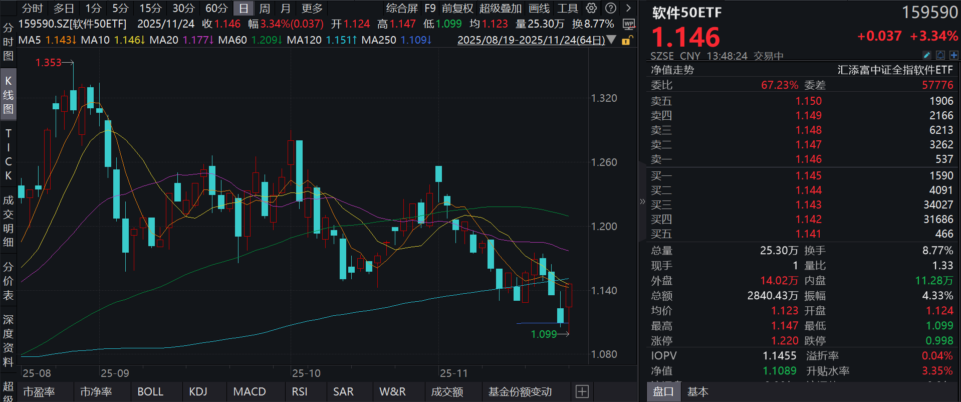 流动性方面,软件50ETF盘中换手8.73%,成交2825.81万元。拉长时间看,截至11月21日,软件50ETF近1月日均成交3514.00万元。