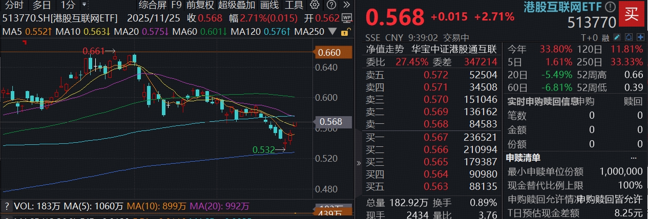 港股互联网ETF(513770)最新规模超百亿,年内日均成交额超6亿元,支持日内T+0交易,不受QDII额度限制,流动性佳!
