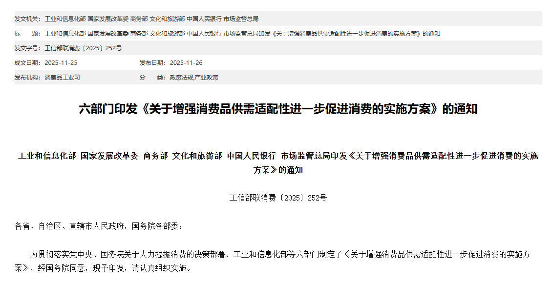 消息面上,工业和信息化部等联合印发《关于增强消费品供需适配性进一步促进消费的实施方案》(以下简称《方案》)。