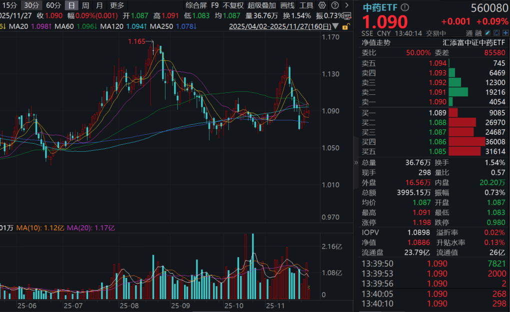 中药ETF(560080)标的指数成分股涨跌互现:粤万年青涨超10%,太龙药业涨超2%众生药业涨超1%;下跌方面,以岭药业、白云山、片仔癀、华润三九微跌。市场观点认为,粤万年青的大涨可能受公司治理结构优化、核心产品参芪降糖片销量增长并成功进入全国集采、流感疫情高发带动抗病毒药物需求激增催化。
