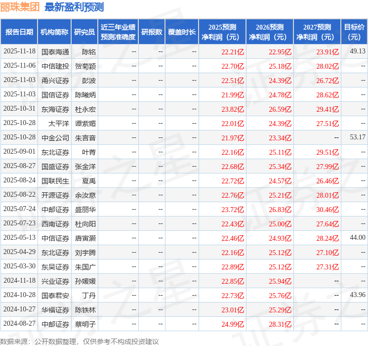 以下是详细的盈利预测信息: