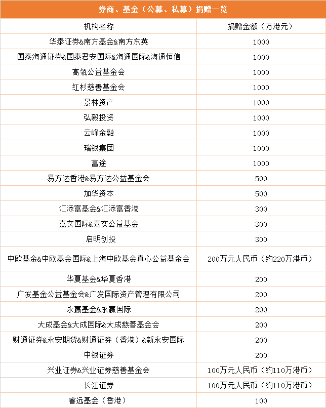 根据财联社最新数据梳理,证券与基金行业已形成“亿元级”救援资金池,24家机构捐赠总额约1.26亿港元。其中,券商合计捐赠5620万港元,公募、私募等机构捐赠7020万港元,展现了金融行业在重大公共事件中的快速响应与支援能力。